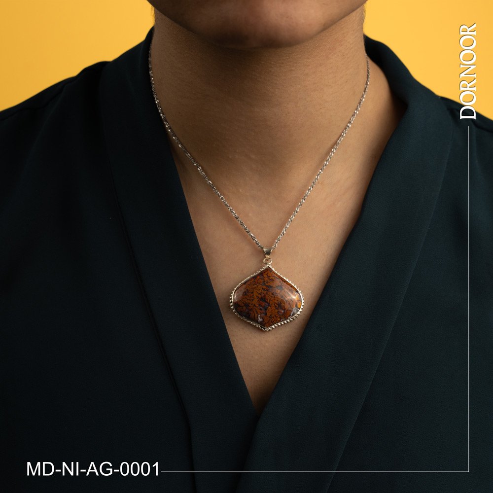 مدال نقره با سنگ عقیق شجر نقره دست ساز