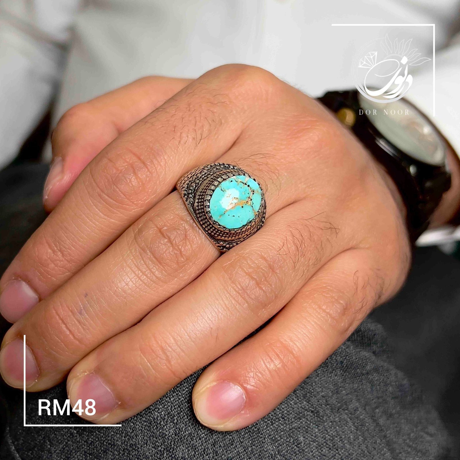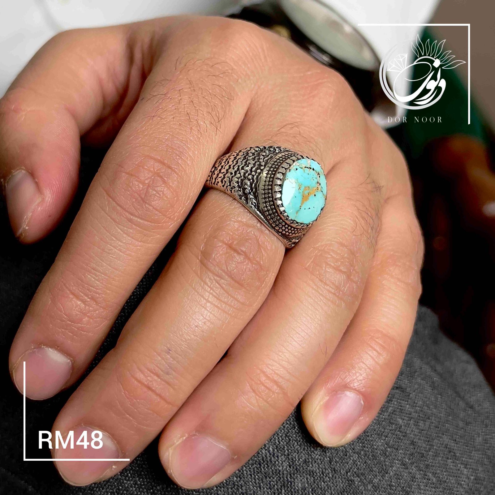 انگشتر نقره مردانه با سنگ فیروزه نیشابور کد Rm48