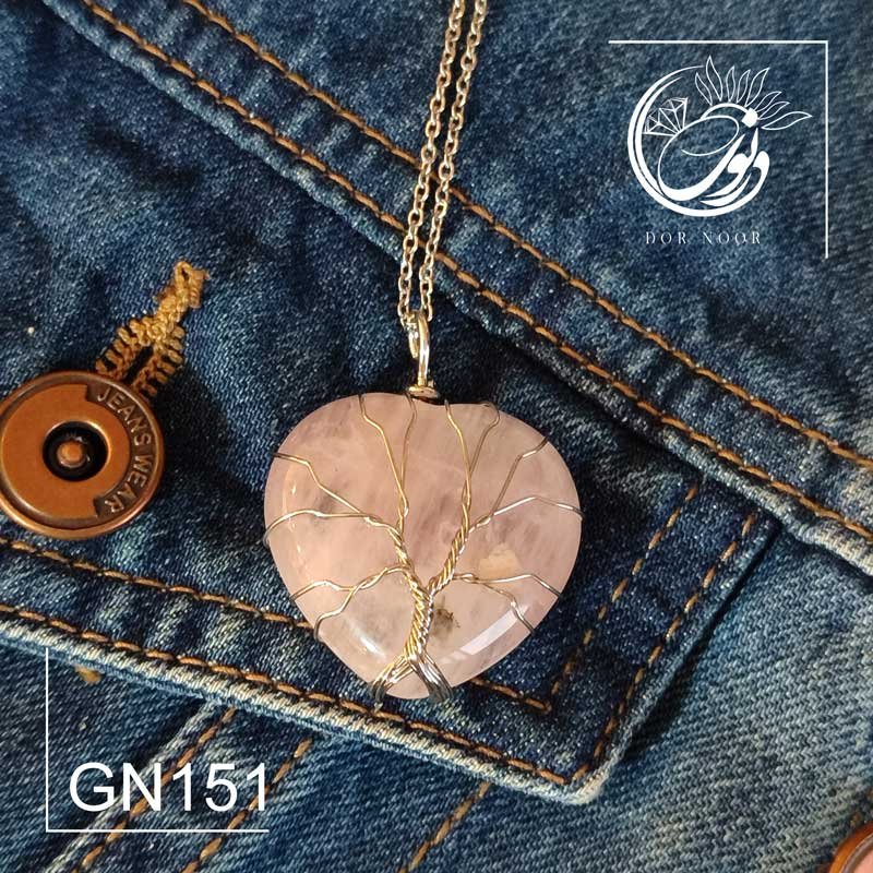 مدال با سنگ کوارتز صورتی مدل قلب درخت زندگی کد GN151