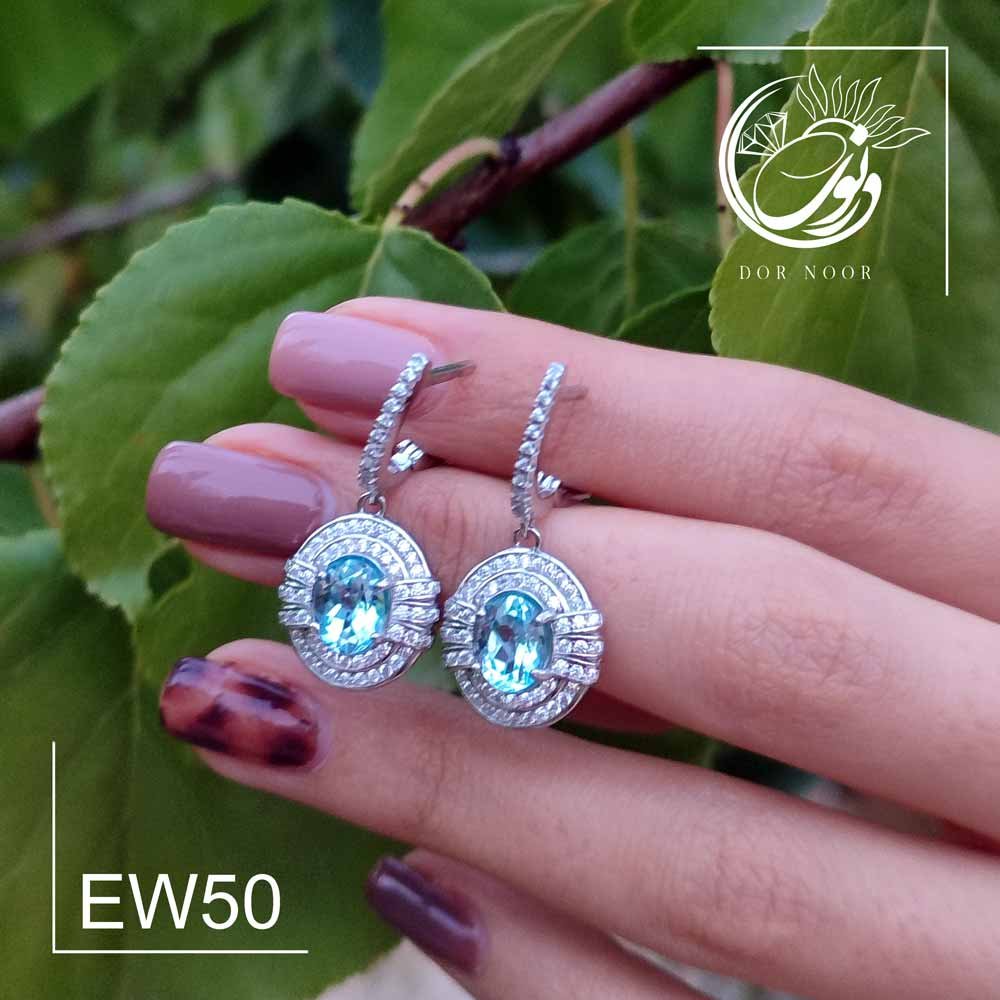 گوشواره نقره با سنگ توپاز آبی سوئیس کد Ew50