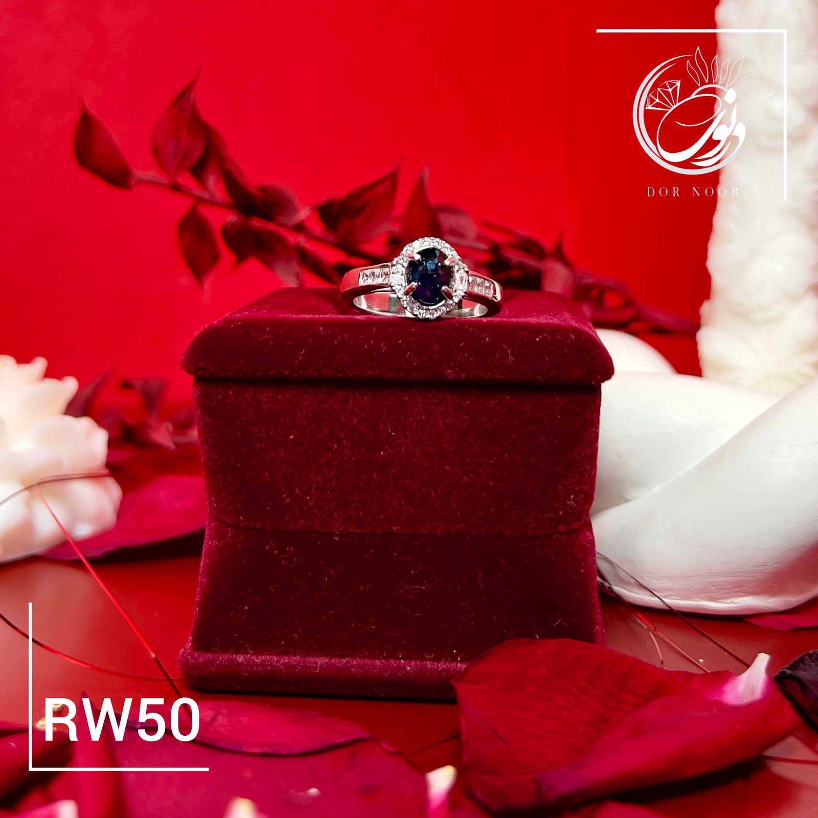انگشتر نقره زنانه با سنگ یاقوت کبود کد Rw50