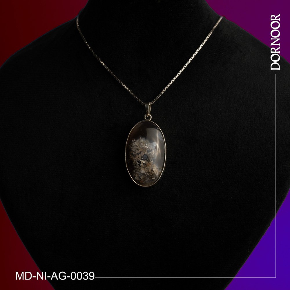 مدال عقیق شجر دست ساز با قاب و گیره نقره 0039