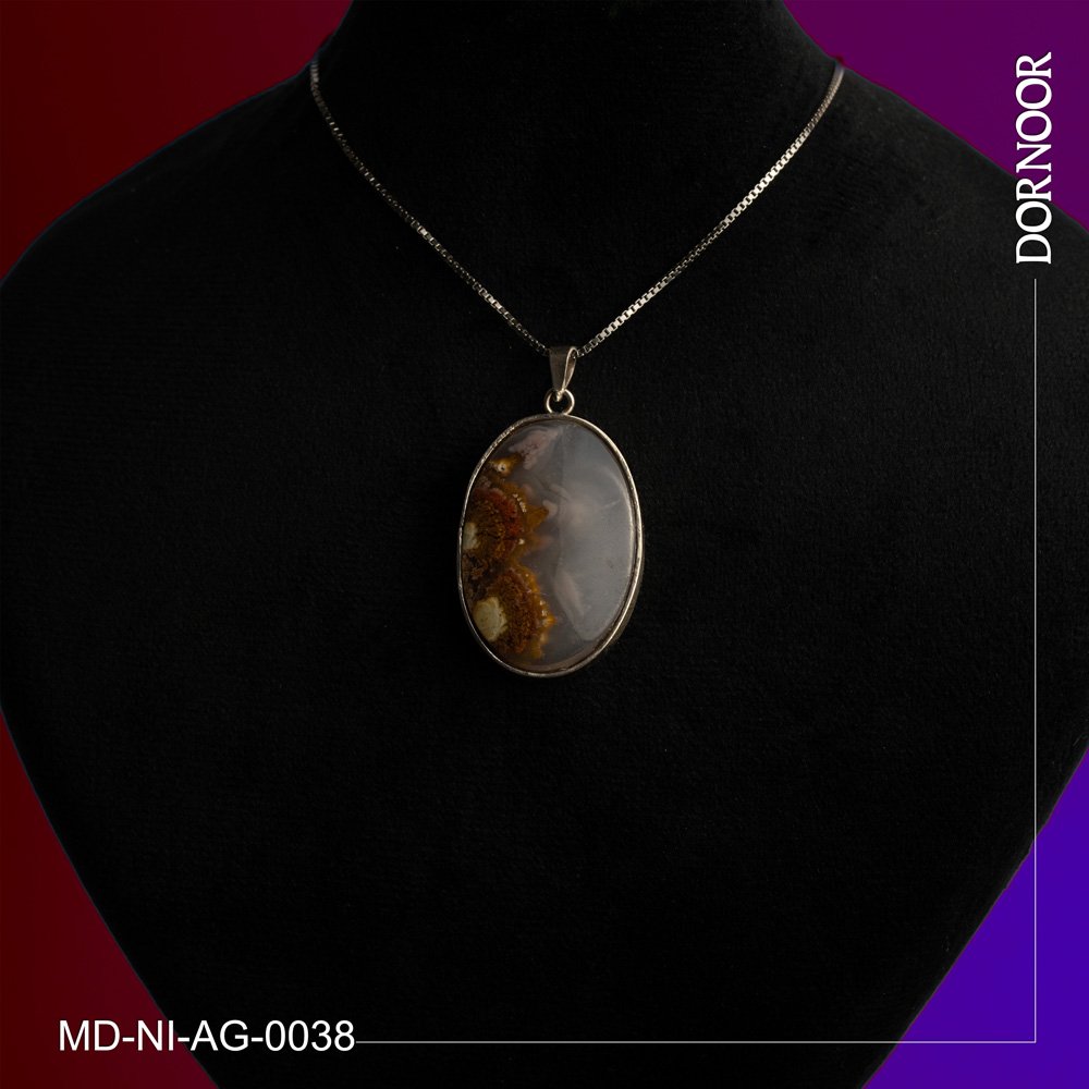 مدال عقیق شجر دست ساز با قاب و گیره نقره 0038