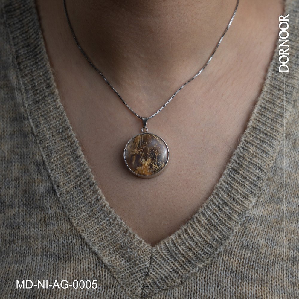 مدال نقره با سنگ عقیق شجر نقره دست ساز