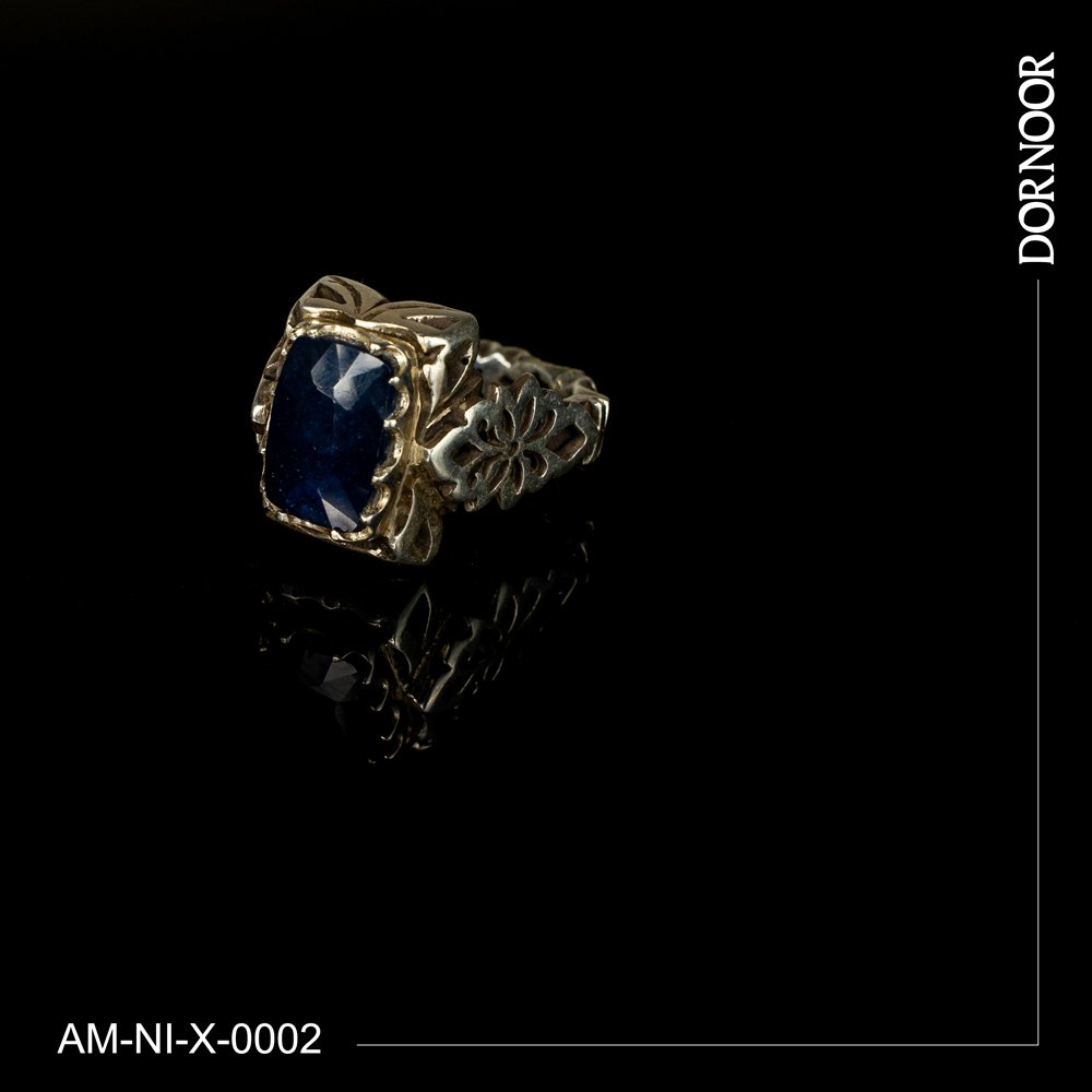 انگشتر نقره مردانه دست ساز با سنگ یاقوت کبود
