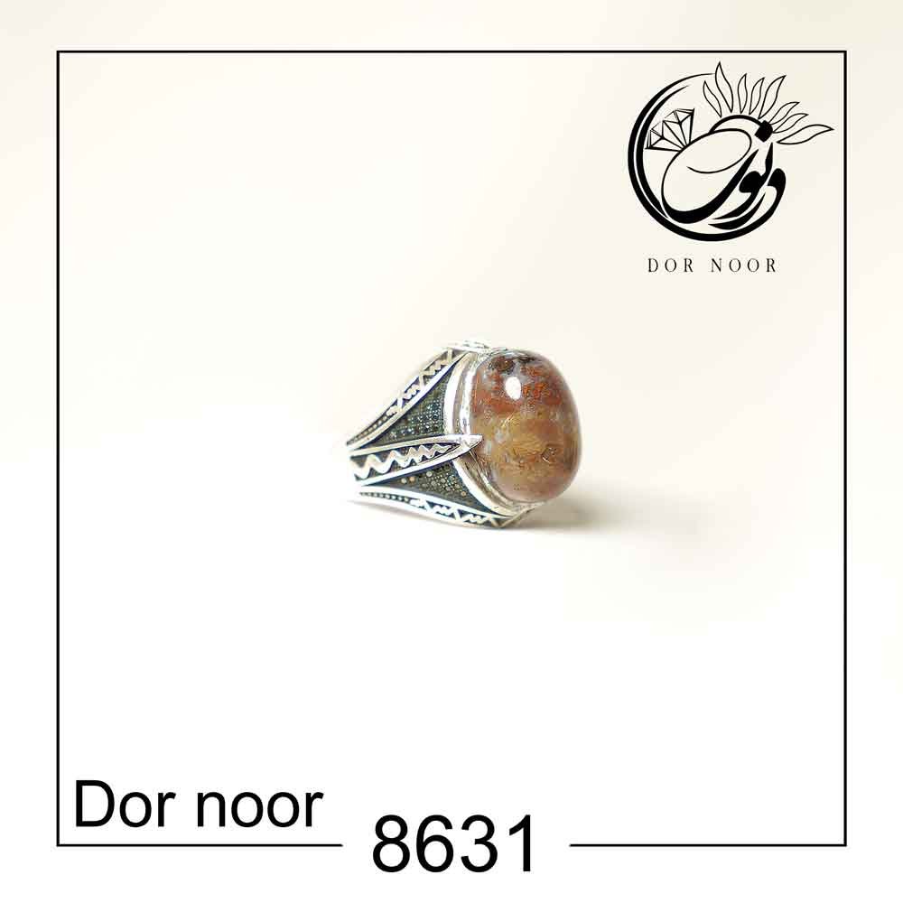انگشتر نقره مردانه با سنگ عقیق شجر پاییزه