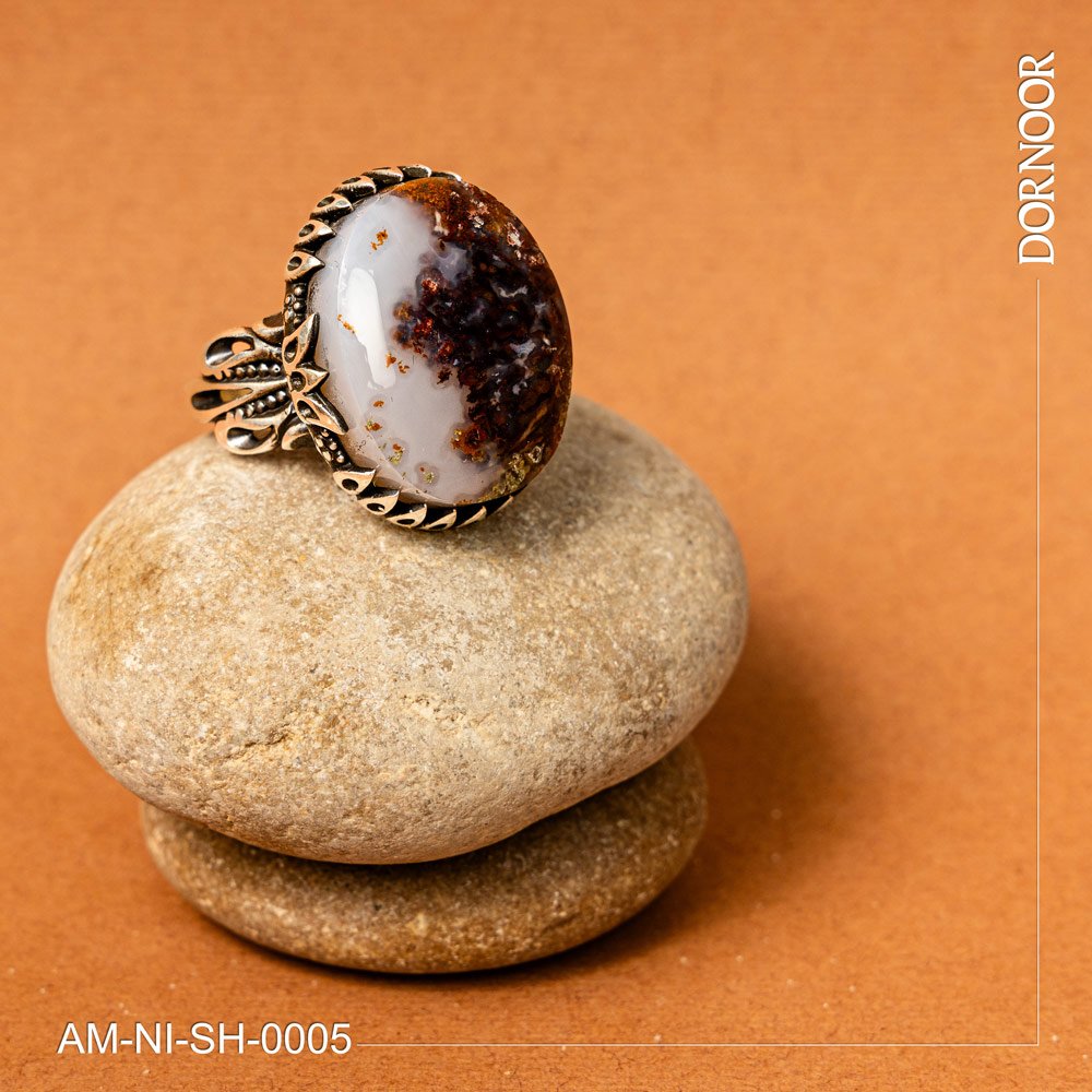 انگشتر نقره مردانه با سنگ عقیق شجر