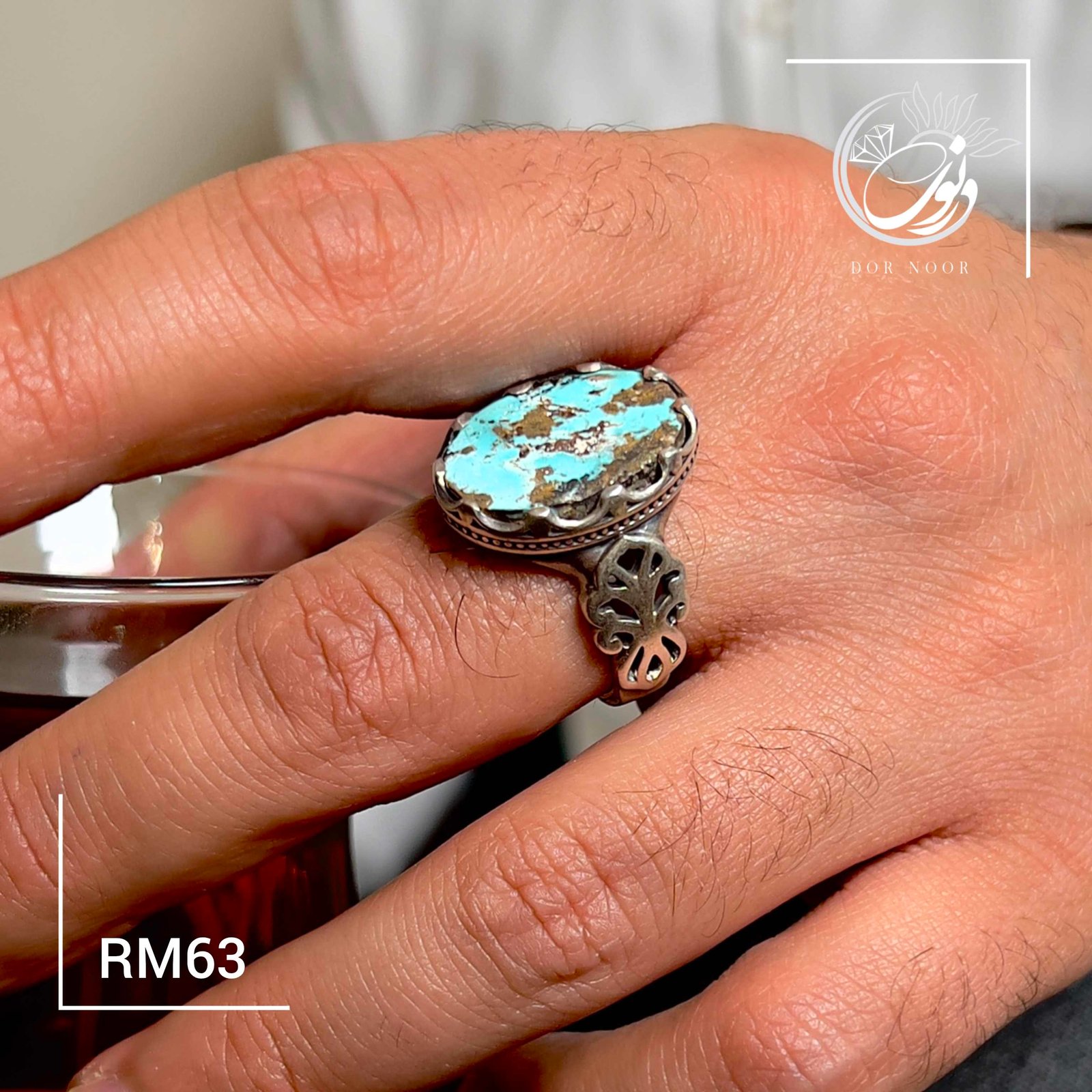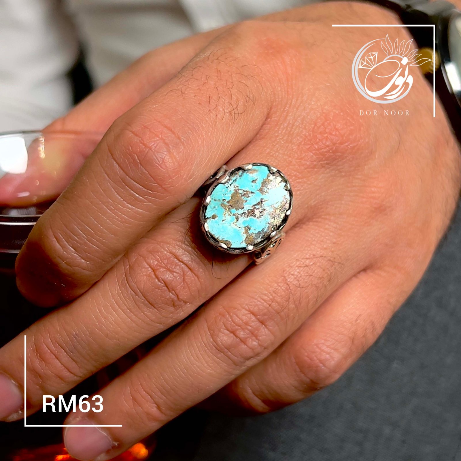 انگشتر نقره مردانه با سنگ فیروزه نیشابور کد Rm63