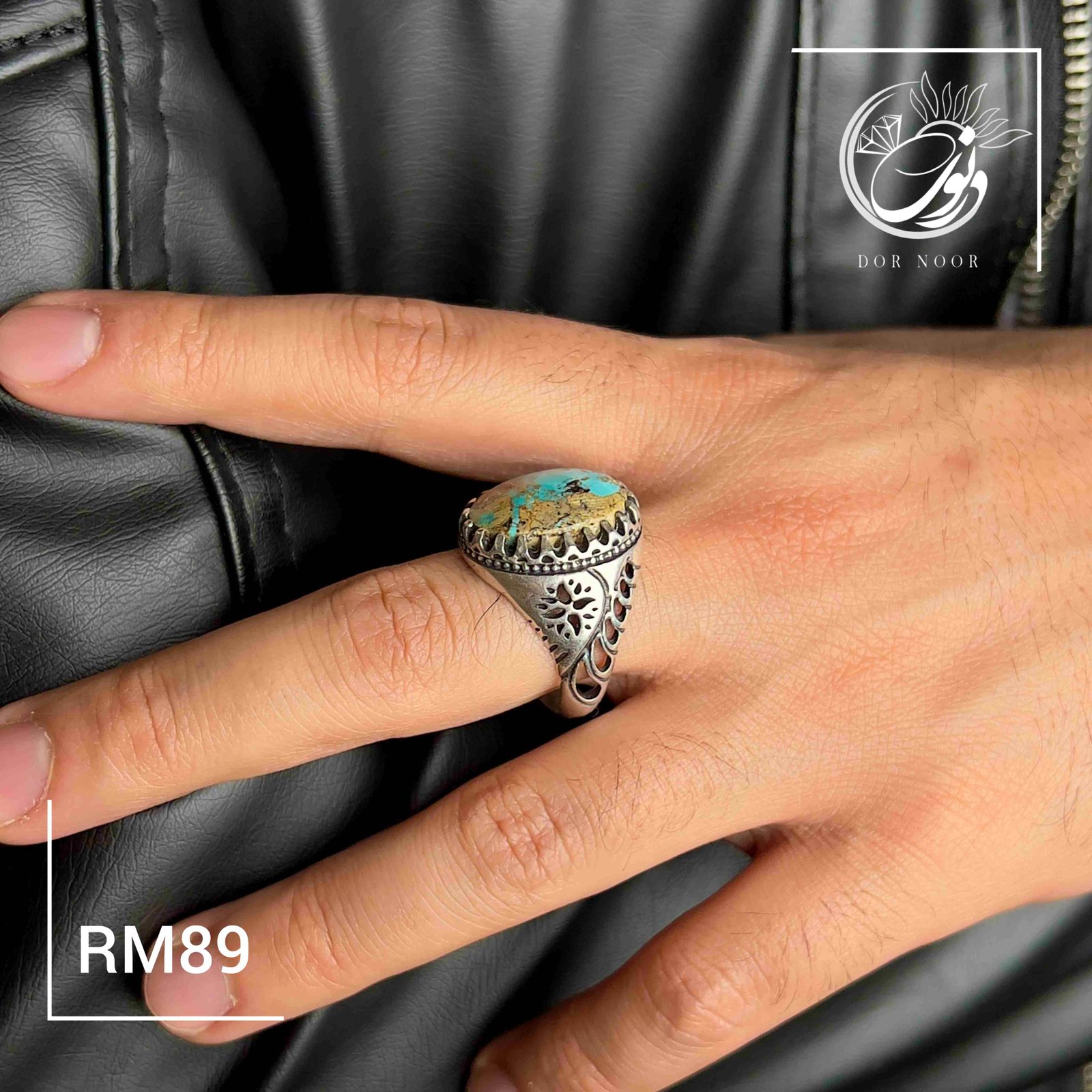 انگشتر نقره مردانه با سنگ فیروزه نیشابور کد Rm89