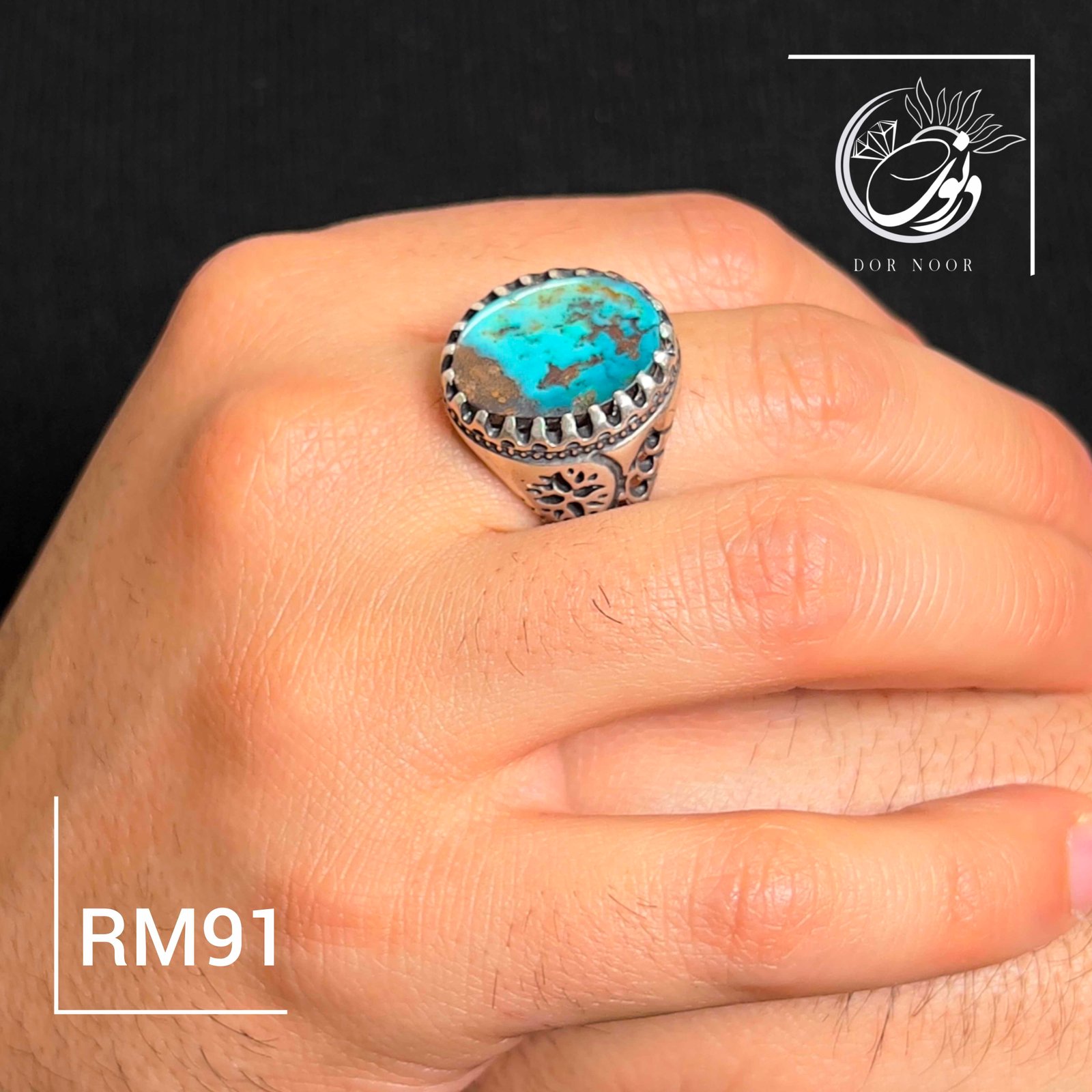 انگشتر نقره مردانه با سنگ فیروزه نیشابور کد Rm91