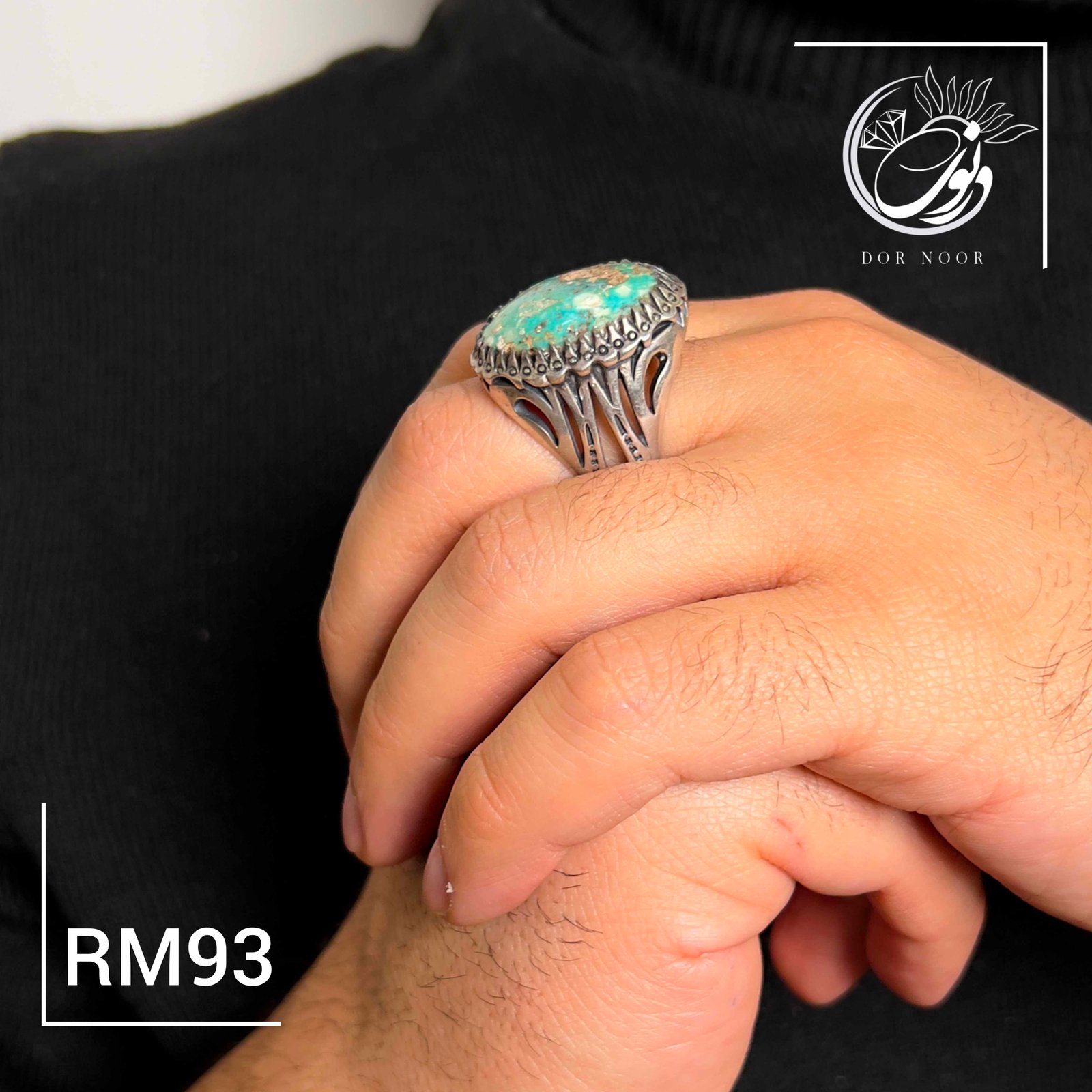 انگشتر نقره مردانه با سنگ فیروزه نیشابور کد Rm93