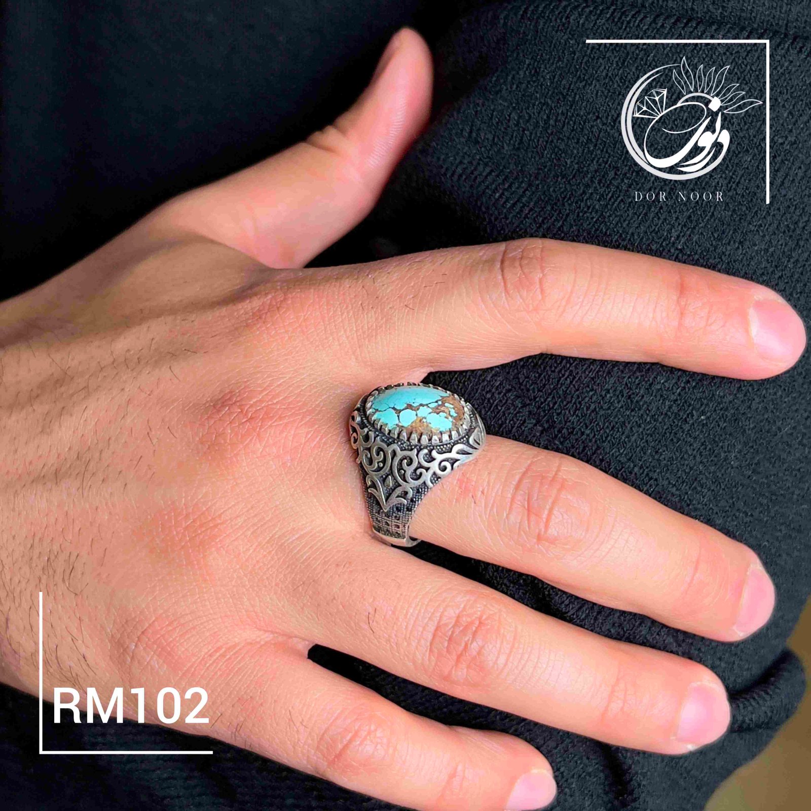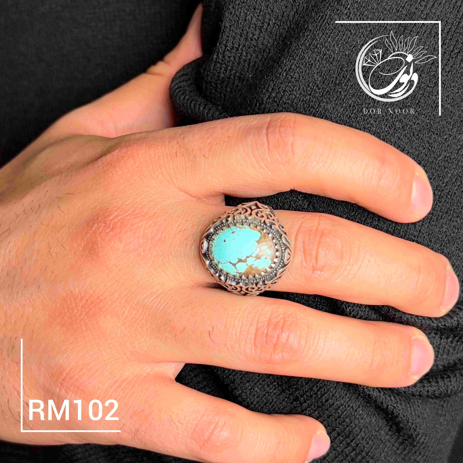 انگشتر نقره مردانه با سنگ فیروزه نیشابور کد Rm102