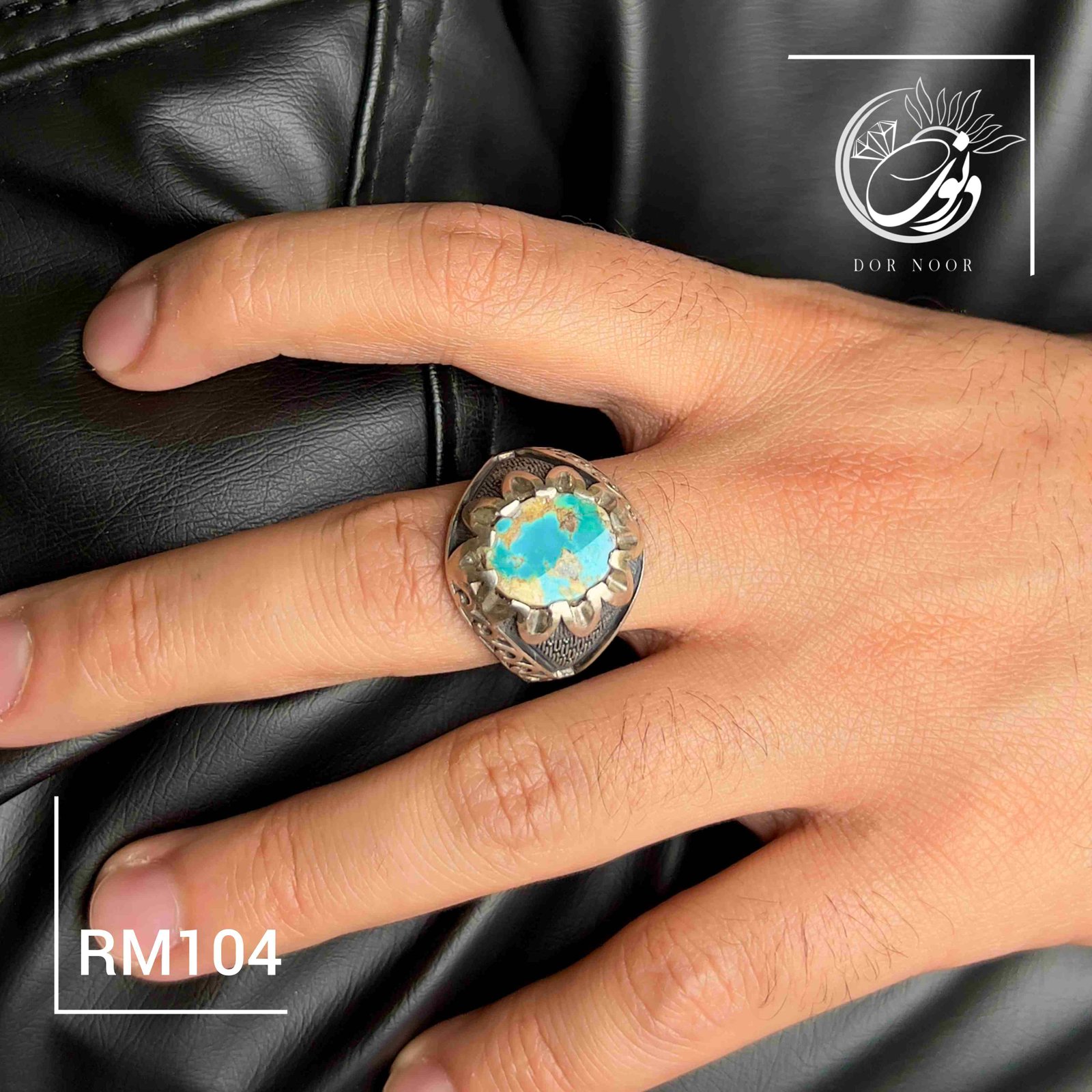 انگشتر نقره مردانه با سنگ فیروزه نیشابور کد Rm104