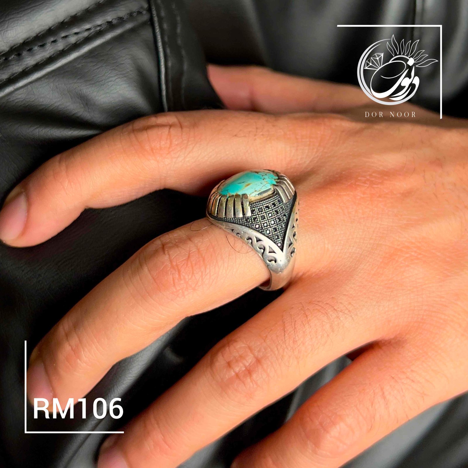 انگشتر نقره مردانه با سنگ فیروزه نیشابور کد Rm106