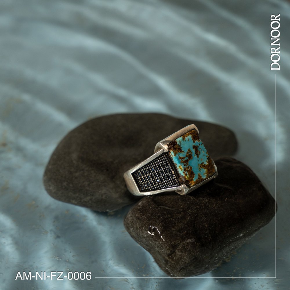 انگشتر نقره مردانه با سنگ فیروزه نیشابور
