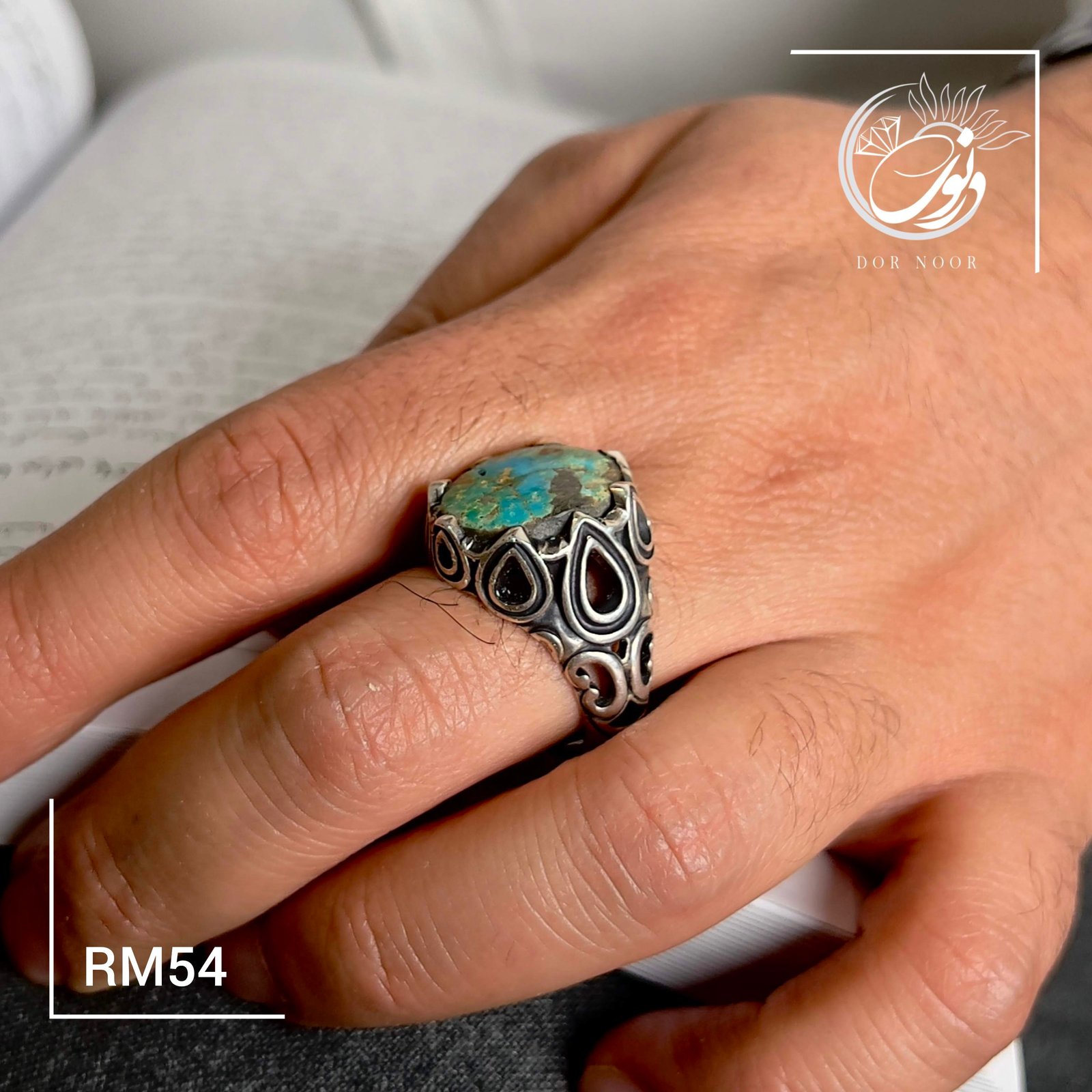 انگشتر نقره مردانه با سنگ فیروزه نیشابور کد Rm54