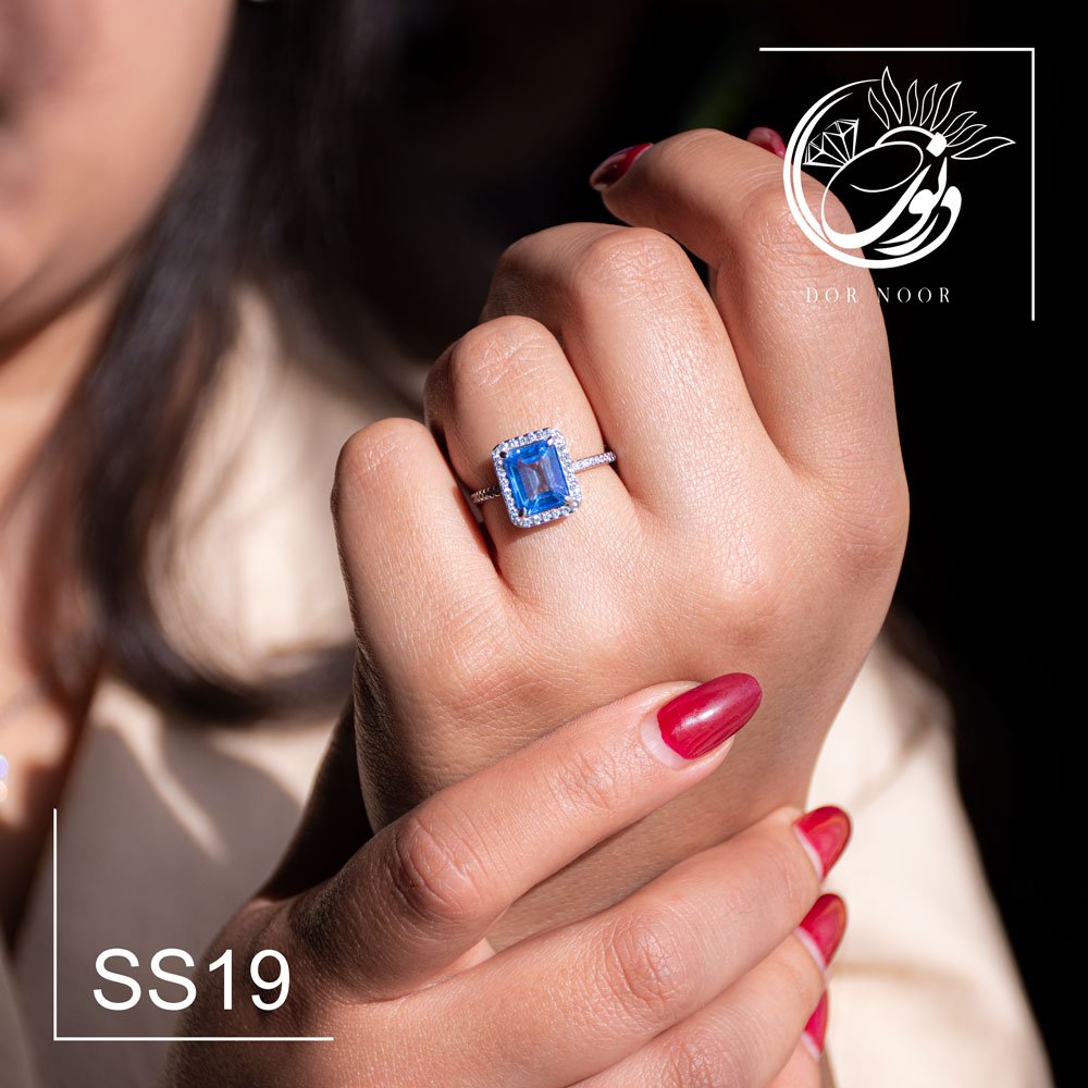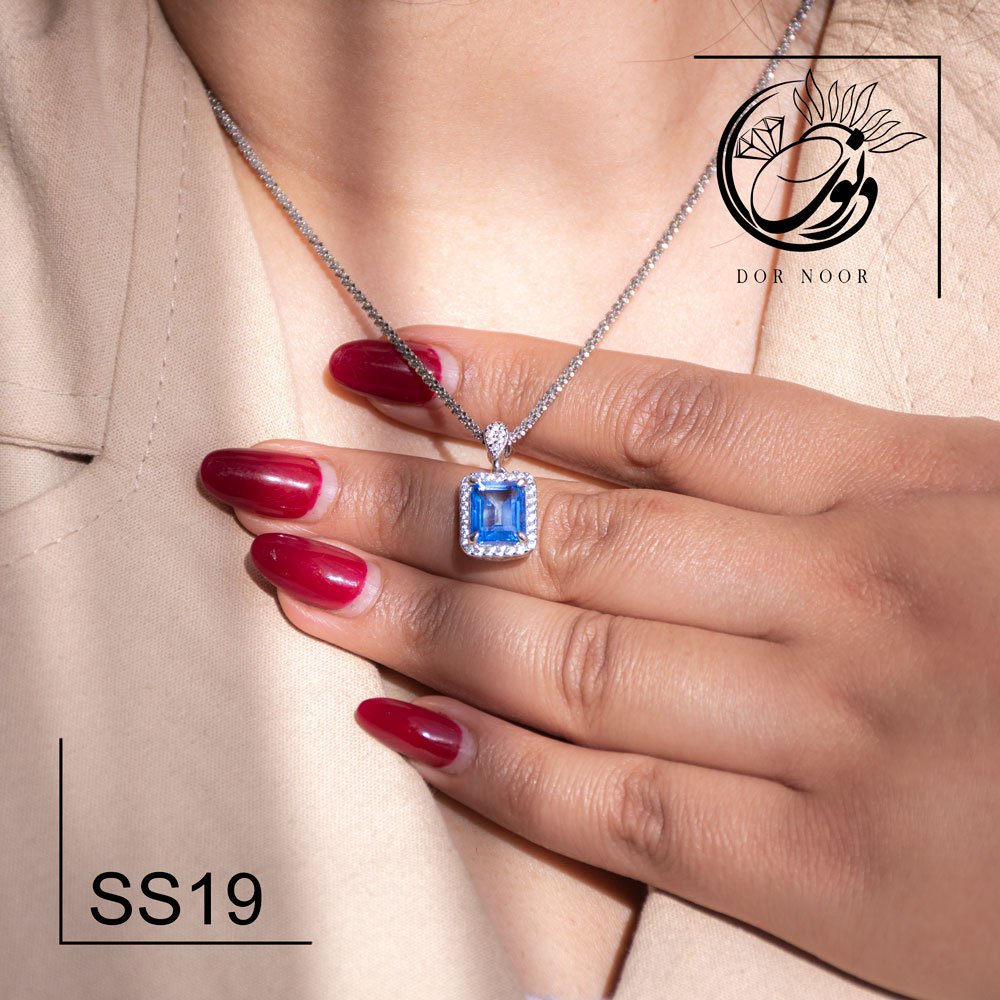 سرویس نقره با سنگ توپاز آبی پر رنگ مستطیلی کد SS19