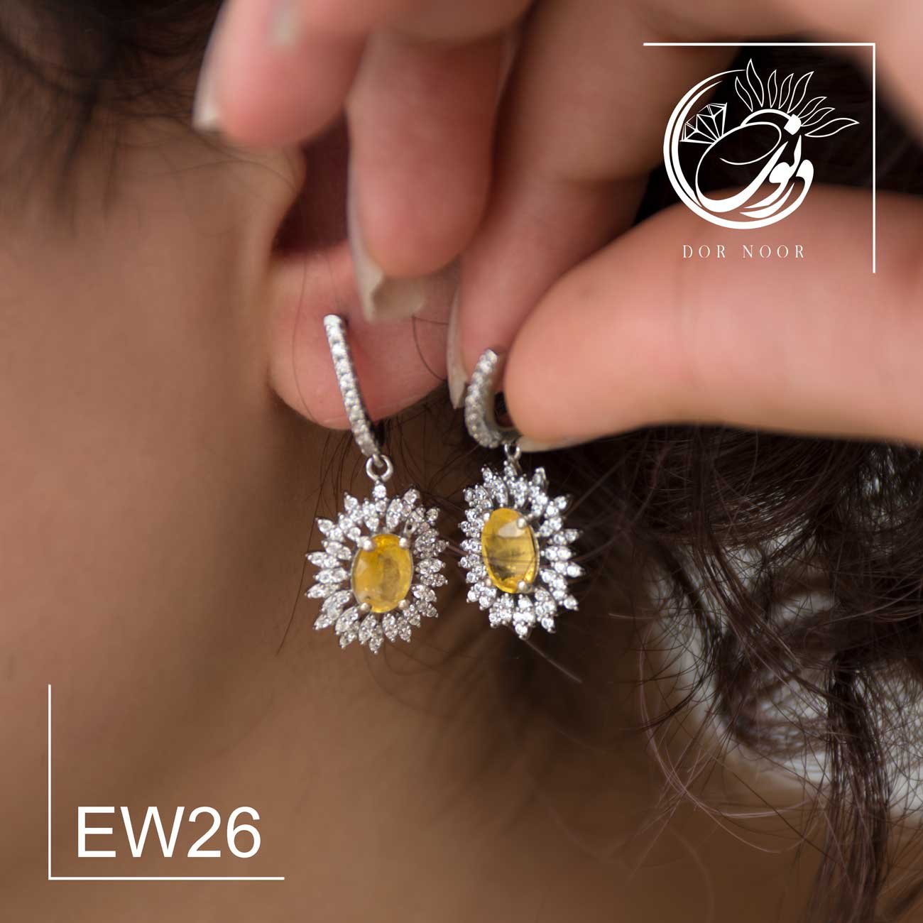 گوشواره نقره با سنگ یاقوت زرد کد ew26