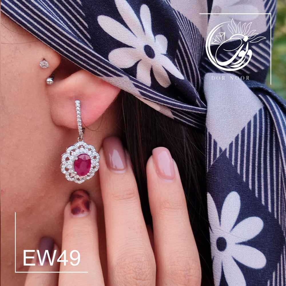 گوشواره نقره با سنگ یاقوت سرخ کد Ew49