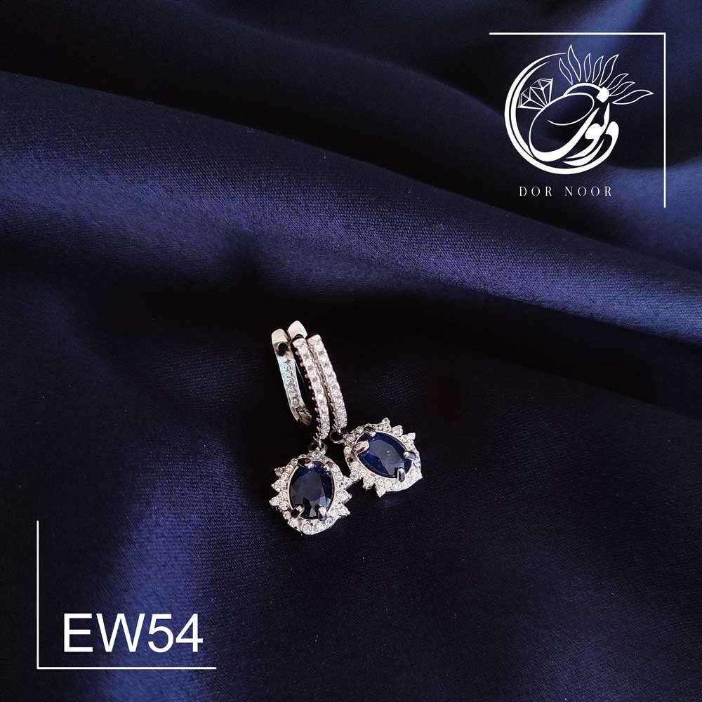 گوشواره نقره با سنگ یاقوت کبود کد Ew54