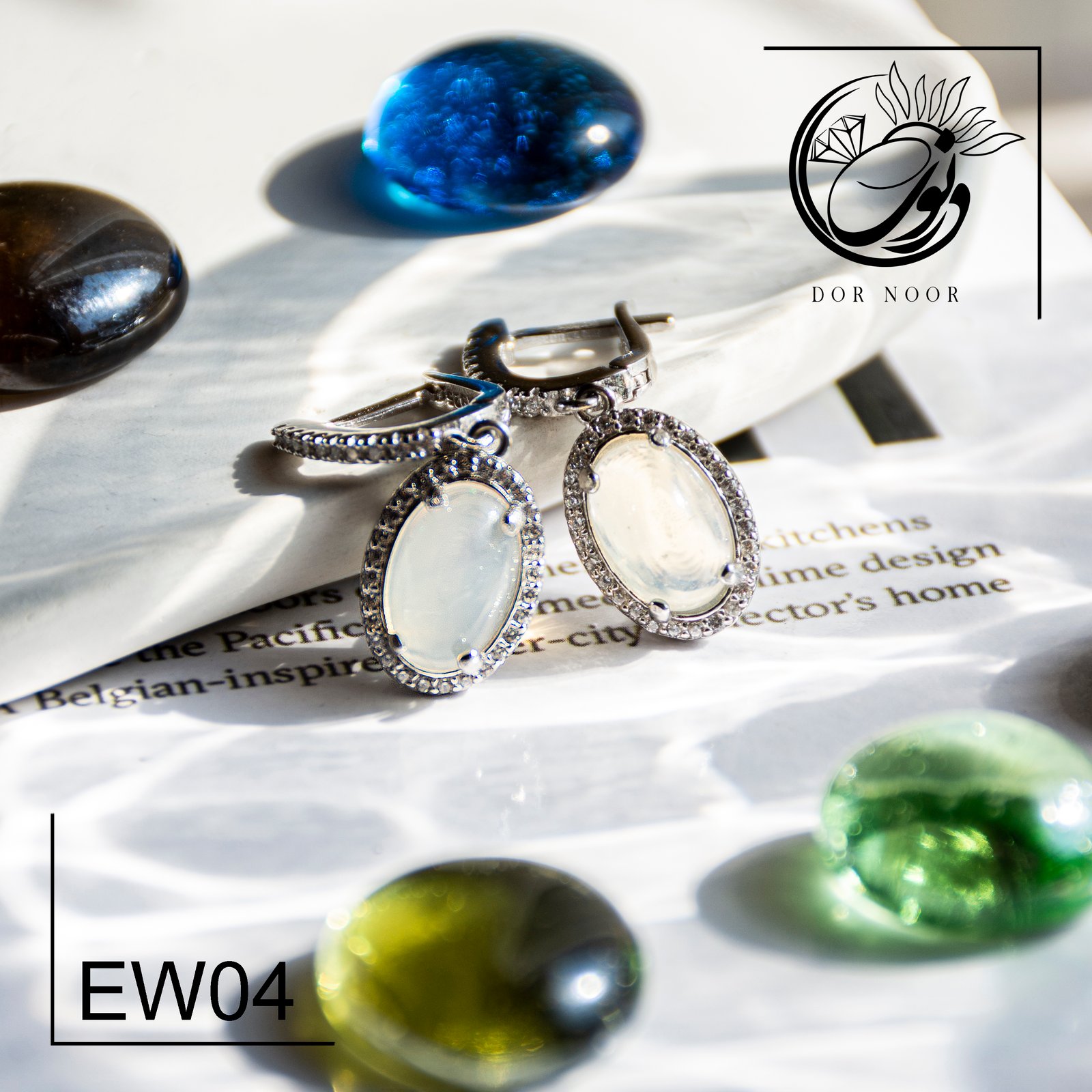 گوشواره نقره با سنگ اوپال سفید تراش دامله کد EW04