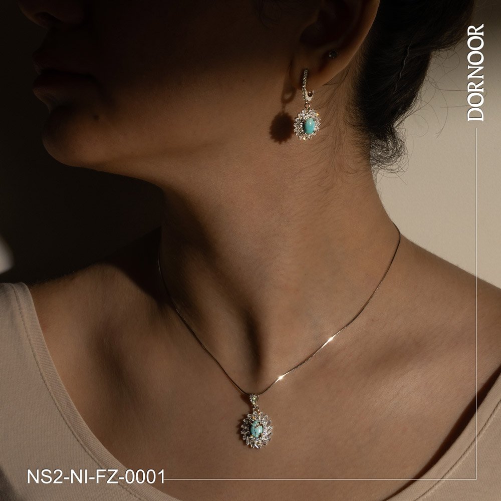 نیم ست نقره با سنگ فیروزه