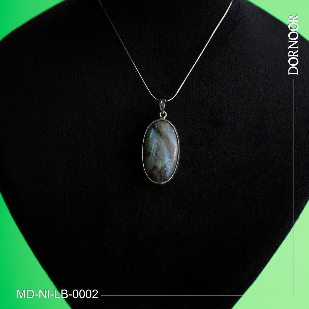 مدال با سنگ لابرادوریت با قاب و گیره نقره دست ساز 0002
